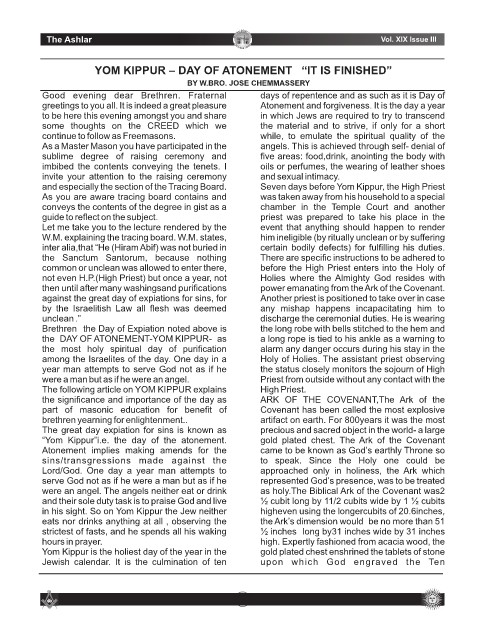 and especially the section of the Tracing Board. Seven days before Yom Kippur, the High Priest