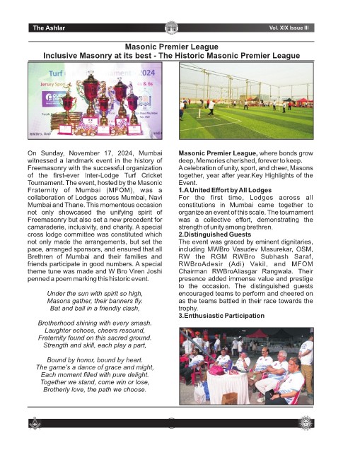 On Sunday, November 17, 2024, Mumbai Masonic Premier League, where bonds grow