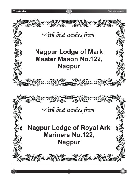 N A L G R I O G E AND LODGE Covid-19 R Vol. XIX Issue III The Ashlar Bulletin-I Nagpur Lodge of Mark Master Mason No.122, Nagpur Nagpur Lodge of Royal Ark Mariners No.122, Nagpur 22