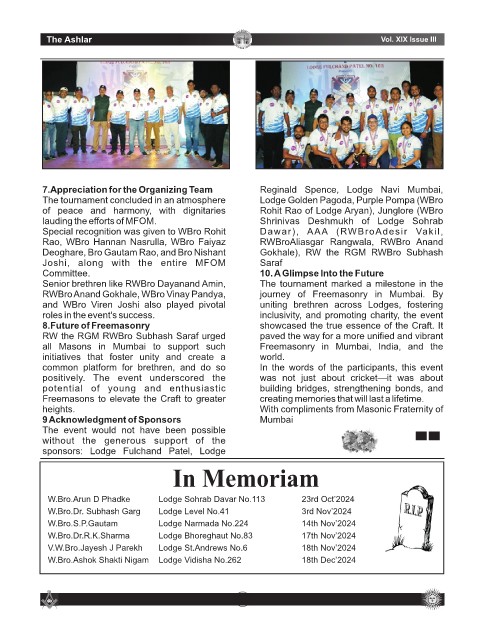 7.Appreciation for the Organizing Team Reginald Spence, Lodge Navi Mumbai,