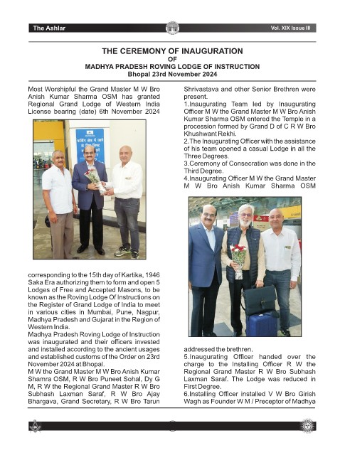 Regional Grand Lodge of Western India 1.Inaugurating Team led by Inaugurating