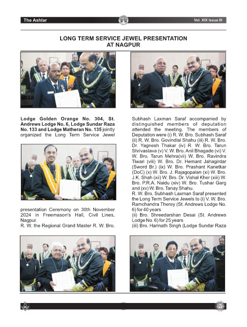 organized the Long Term Service Jewel Deputation were (i) R. W. Bro. Subhash Saraf