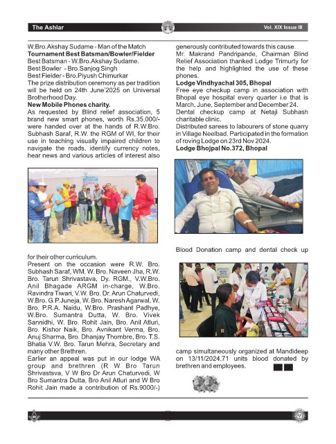 W.Bro.Akshay Sudame - Man of the Match generously contributed towards this cause.