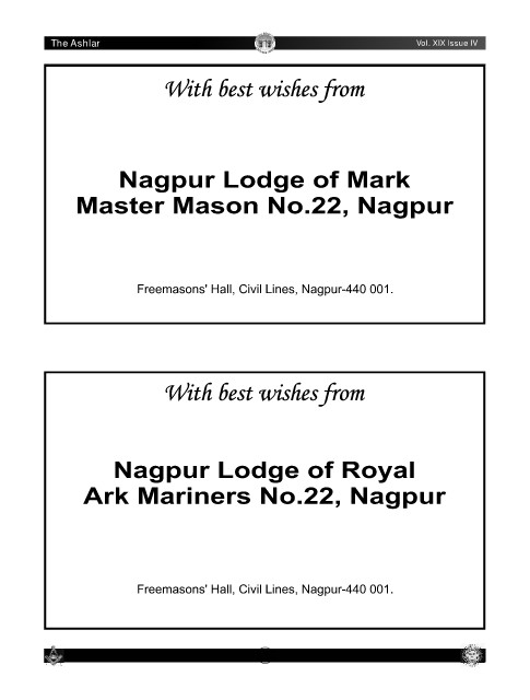 N A L G R I O G E AND LODGE The Ashlar R Vol. XIX Issue IV 8