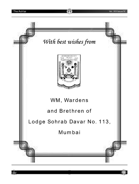 N A L G R I O G E AND LODGE Bulletin-I Covid-19 R Vol. XIX Issue IV The Ashlar WM, Wardens and Brethren of Lodge Sohrab Davar No. 113, Mumbai 12
