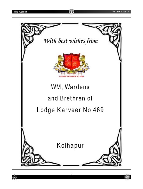 N A L G R I O G E AND LODGE Bulletin-I Covid-19 R Vol. XIX Issue IV The Ashlar WM, Wardens and Brethren of Lodge Karveer No.469 Kolhapur 14