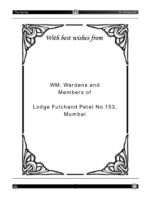 N A L G R I O G E AND LODGE Bulletin-I Covid-19 The Ashlar R Vol. XIX Issue IV WM, Wardens and Members of Lodge Fulchand Patel No.153, Mumbai 24