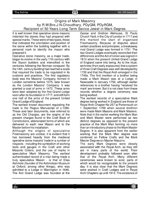 body was the Masons' Company, formed in made a Mark Mason was at a Lodge in