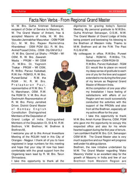 GLI, M. W. Bro. Rajeev Ramkrishna the Brethren of Western India. Thanks to