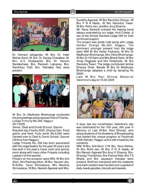 Nandeshwar, Bro. Ramesh Lalvaney, Bro. Ravindra Tiwari. The lodge contributed similar