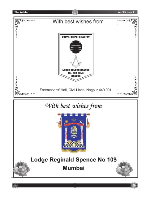 N A L G R I O G E AND LODGE The Ashlar R Vol. XIX Issue II Lodge Reginald Spence No 109 Mumbai 8