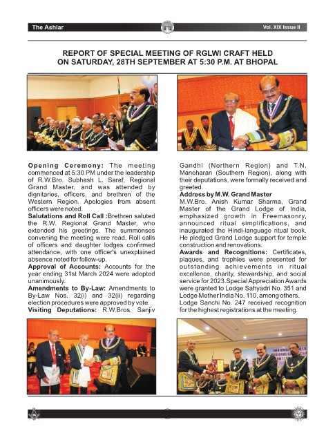 Western Region. Apologies from absent M.W.Bro. Anish Kumar Sharma, Grand