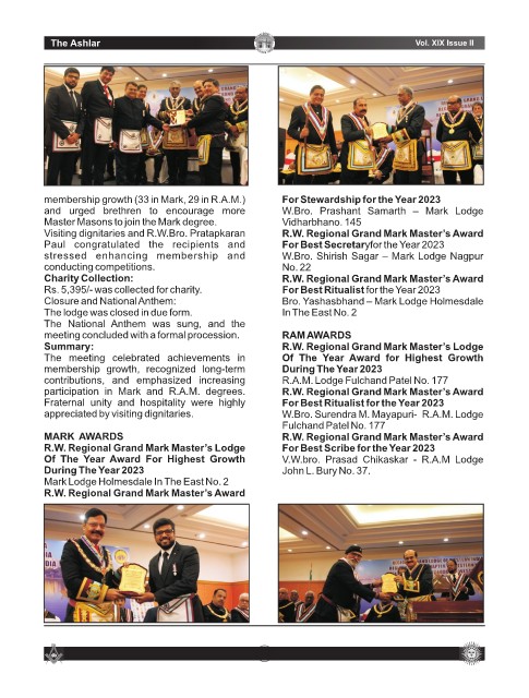 Fraternal unity and hospitality were highly For Best Ritualist for the Year 2023