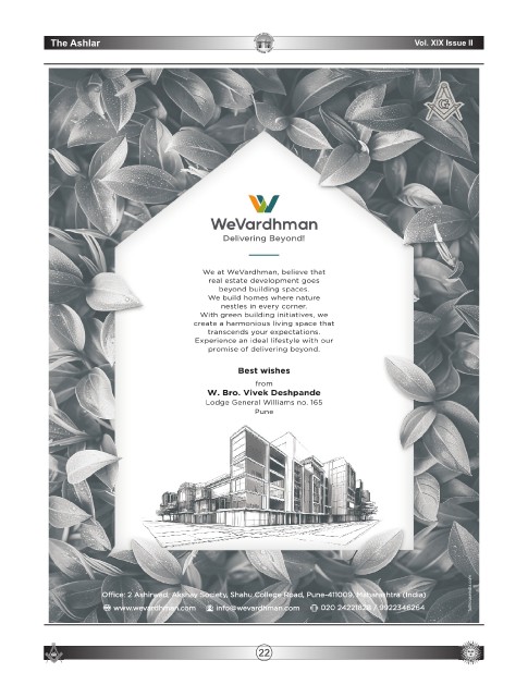 N A L G R I O G E AND LODGE Bulletin-I The Ashlar R Vol. XIX Issue II Covid-19 22