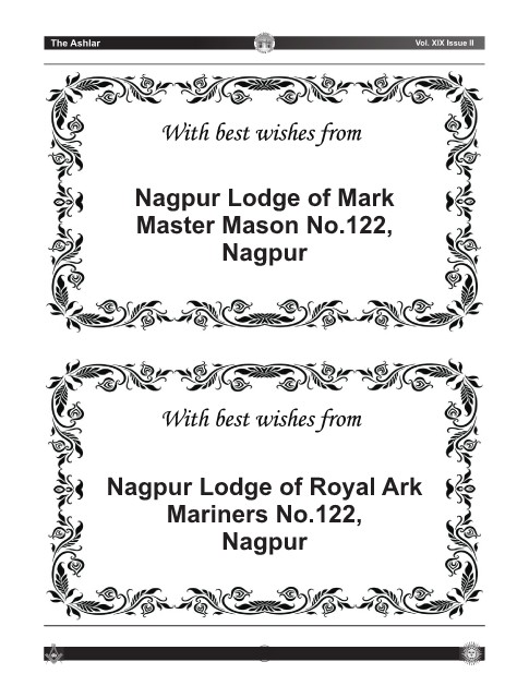 N A L G R I O G E AND LODGE Covid-19 R Vol. XIX Issue II The Ashlar Bulletin-I Nagpur Lodge of Mark Master Mason No.122, Nagpur Nagpur Lodge of Royal Ark Mariners No.122, Nagpur 24