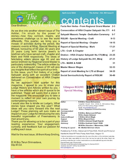 reading experience. Your engagement, Advisory : R.W.Bro.Subhash Saraf, RGM