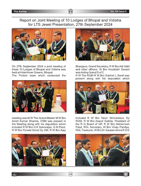 these 10 Lodges of Bhopal and Vidisha was and other officers. W Bro Koustubh Gosavi