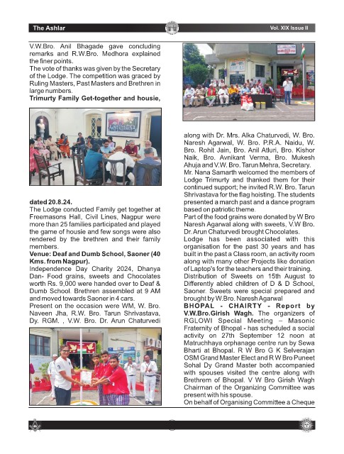 Present on the occasion were WM, W. Bro. BHOPAL - CHAIRTY - Report by