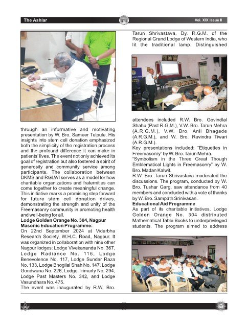 presentation by W. Bro. Sameer Tulpule. His (A.R.G.M.), and W. Bro. Ravindra Tiwari