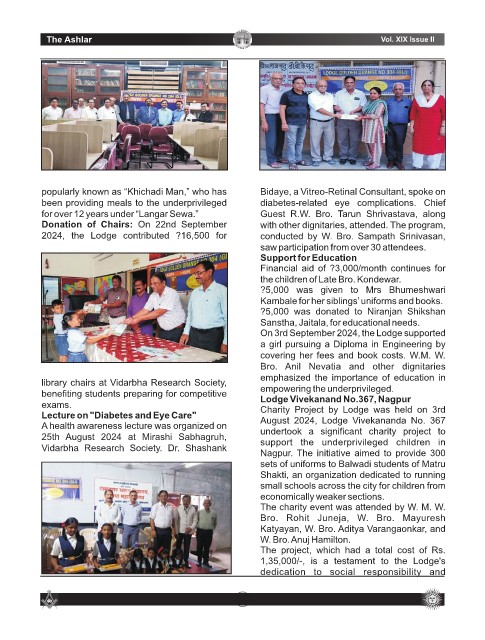 2024, the Lodge contributed ?16,500 for conducted by W. Bro. Sampath Srinivasan,
