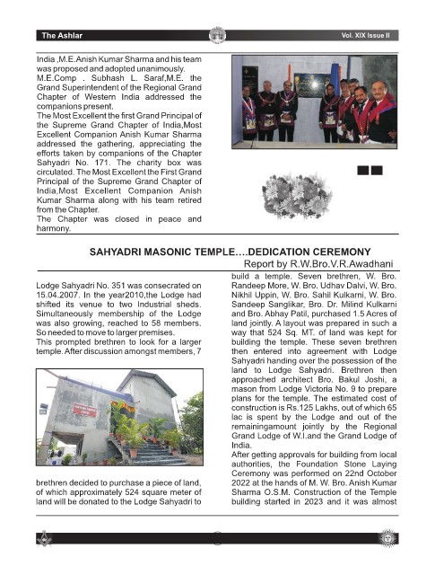 SAHYADRI MASONIC TEMPLE….DEDICATION CEREMONY