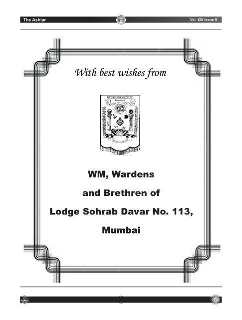 N A L G R I O G E AND LODGE Bulletin-I Covid-19 R Vol. XIX Issue II The Ashlar WM, Wardens and Brethren of Lodge Sohrab Davar No. 113, Mumbai 6
